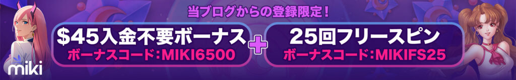ここでは、早速Mikiカジノのオンラインカジノボーナスをご紹介しましょう。